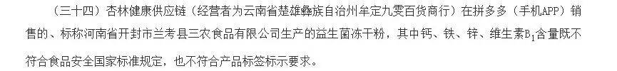 干涉的起点是改正市场失灵!我国养分健康市场持久盘桓正在失灵临界点两侧,因而严酷监管是优化营商的需要之举!1月23日,市场监管总局最新传递显示,被检出维生素、矿物质等15项养分素不达标,既不合适国度尺度,也远低于标签标示值。庶正康讯「科学取律例核心」担任人李芃阐发认为:成分标注问题正在特殊炊事类食物抽检不及格中所占比例较大,且正在多次抽检中频频呈现。这一问题的成因复杂多样,好比一些维生素成分正在产物中的添加量相对较小,正在投料环节容易发生误差;又或者是因为采购的预混料批次分歧,导致含量发生变化,进而使最终检测成果取企业尺度呈现误差。但呈现如斯稀有的15项严沉不及格环境,已远超一般工艺波动或原料批次差别的合理范围,企业的客不雅要素恐占从导。妊妇、白叟等人群,不容虚标、不容缩水。就正在1月13日发布的抽检不及格环境传递(市监食检发〔2026〕2号)中,统一运营者发卖的另一款“益生菌冻干粉”(标称出产商为河南兰考县三农食物无限公司)同样因钙、铁、锌、维生素B1含量不达标被传递。