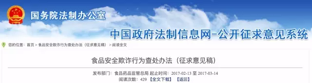 第一条【立法目标】为峻厉查处食物平安欺诈行为,食物平安,保障身体健康和生命平安,按照《中华人平易近国食物平安法》等法令律例,制定本法子。第二条【合用范畴】县级以上食物药品监视办理部分根据职责分工查处食物平安欺诈行为,合用本法子。第【概念界定】本法子所称食物平安欺诈是指行为人正在食物出产、储存、运输、发卖、餐饮办事等勾当中居心供给虚假环境,或者居心坦白实正在环境的行为。第四条【根基准绳】县级以上食物药品监视办理部分查处食物平安欺诈行为,该当遵照严酷、及时、公开、的准绳。第五条【共同查处权利】食物出产运营等相关行为人该当共同食物药品监视办理部分对食物平安欺诈行为的查处,出产运营场合,照实供给相关材料、数据和消息。(一)正在产物研发、进货检验、出厂查验、储存运输、不及格食物处置、食物平安变乱措置等勾当中坦白实正在环境或者进行虚假记实;(三)正在出产运营勾当中伪制、变制或者利用伪制、变制的出产运营许可证书、产物注册证书、存案凭证、查验检疫及格证明、产地证明、购货凭证等文件;(二)虚假标注企业名称、产物注册证号、出产许可证号、加工工艺、产地、出产地址、联系体例等消息;第十条【食物宣传欺诈】以收集、德律风、电视、、、会议等体例宣传食物,有下列景象之一的,属于食物宣传欺诈:(一)食物的机能、功能、产地、规格、成分、出产者、尺度、保质期、查验演讲等消息取现实环境不符;(三)通俗食物、暗示具有功能或者特殊医学用处的,或者利用“可医治”、“可治愈”等医疗术语;(一)食物查验机构查验数据,私行改换样品,伪制试验记实、查验数据和查验成果,出具虚假查验结论等;(二)食物认证机构违反认证法式坦白实正在环境、审核记实、伪制认证文书或者出具虚假认证结论等。(一)申请保健食物、特殊医学用处配方食物、婴长儿配方乳粉产物配方注册时,供给虚假消息、数据、材料和样品;(一)保健食物进行存案时,供给虚假研告、产物配方、出产工艺、平安性和保健功能评价材料、查验演讲等材料;(四)食物储存办事供给者向监管部分演讲虚化名称、地址、代表人或者担任人姓名,以及储存食物的所有人、居处、类型、代表人或者担任人姓名、食物平安办理轨制、食用农产物次要品种、摊位数量等消息。第十六条【提交虚假监管消息】食物出产运营者正在食物药品监管部分进行监视查抄、抽样查验、案件查询拜访、变乱措置时,坦白实正在环境,或者提交虚假的天分证明、进货检验记实、食物出产运营记实、出厂查验记实、食物查验及格结论、扣问消息等,属于向监管部分提交虚假消息。第十七条【产物欺诈法令义务】 违反本法子第七条第(一)、(二)、(三)、(四)项,由县级以上食物药品监视办理部分按照《食物平安法》第一百二十第一款的赐与惩罚,并对其代表人、次要担任人、间接担任的从管人员和其他间接义务人员处1万元以上3万元以下罚款。违反本法子第七条第(五)项,由县级以上食物药品监视办理部分按照《食物平安法》第一百二十四条第一款的赐与惩罚,并对其代表人、次要担任人、间接担任的从管人员和其他间接义务人员处1万元以上3万元以下罚款。第十八条【食物出产运营行为欺诈法令义务】违反本法子第八条,由县级以上食物药品监视办理部分赐与,并处1万元以上3万元以下罚款,并对其代表人、次要担任人、间接担任的从管人员和其他间接义务人员处5千元以上1万元以下罚款。第十九条【标签仿单欺诈法令义务】 违反本法子第九条第(一)、(二)、(四)、(五)、(六)项,由县级以上食物药品监视办理部分按照《食物平安法》第一百二十五条第一款的赐与惩罚,次要担任人、间接担任的从管人员和其他间接义务人员处1万元以上3万元以下罚款。违反本法子第九条第(三)项,由县级以上食物药品监视办理部分按照《食物平安法》第一百二十四条第一款的赐与惩罚,并对其代表人、次要担任人、间接担任的从管人员和其他间接义务人员处1万元以上3万元以下罚款。第二十条【食物宣传欺诈法令义务】 违反本法子第十条第(一)至(六)项,由县级以上食物药品监视办理部分赐与,并处1万元以上3万元以下罚款,并对其代表人、次要担任人、间接担任的从管人员和其他间接义务人员处5千元以上1万元以下罚款。违反本法子第十条第(七)项,由县级以上食物药品监视办理部分按照《食物平安法》第一百二十五条第一款的赐与惩罚,并对其代表人、次要担任人、间接担任的从管人员和其他间接义务人员处1万元以上3万元以下罚款。对食物做虚假宣传且情节严沉的,按照《食物平安法》第一百四十条第五款处置,并对其代表人、次要担任人、间接担任的从管人员和其他间接义务人员处1万元以上3万元以下罚款。食物宣传欺诈涉及相关部分职责的,由县级以上食物药品监视办理部分移交相关部分处置,并向社会通知布告。第二十一条【消息欺诈法令义务】 违反本法子第十一条,单元和小我、、虚假食物平安消息,形成违反治安办理行为的,该当移交机关依法处置。违反本法子第十一条,或者从业人员存正在虚假旧事欺诈行为的,由县级以上食物药品监视办理部分移送相关部分依法处置,并向社会通知布告。第二十二条【食物查验、认